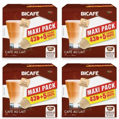 BICAFÉ Café con Leche Sin Azúcares Añadidos – Pack Ahorro 192 Cápsulas